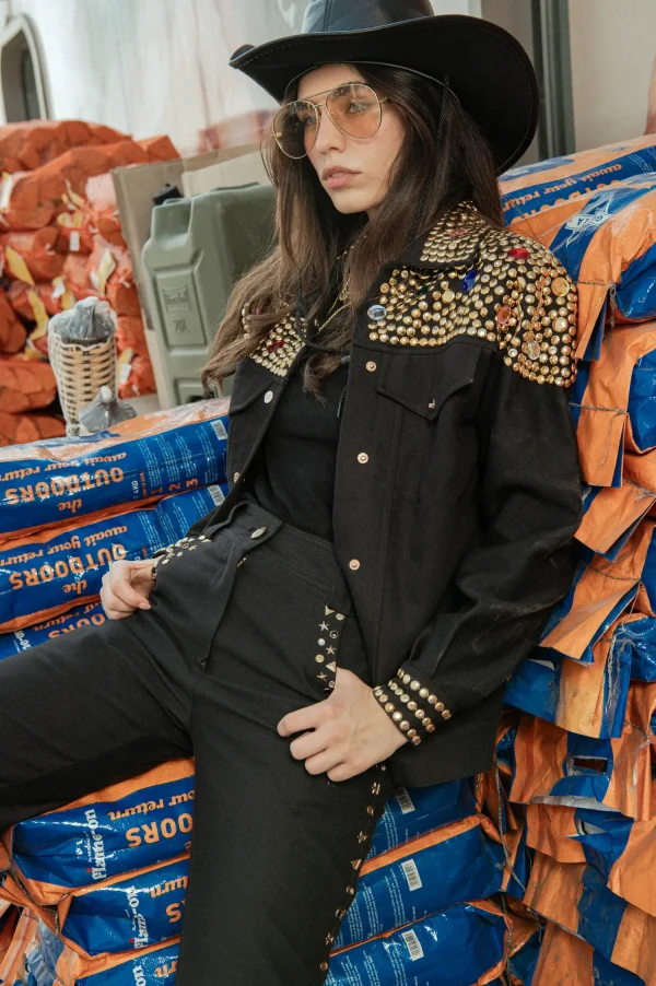 Single Breast Jacket with More than 3000 studs  all placed by hands.